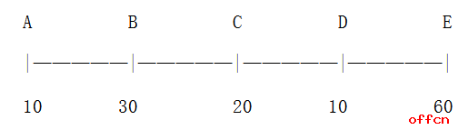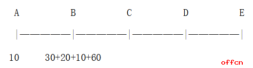 有了这个操作步骤,我们进而可以在B、C之间设定一个支点,左边的重量和为10+30=40,右边的重量和为20+10+60=90,40<90,所以C点比B点更合适;在C、D之间设定一个支点,左边的重量和为10+30+20=60,右边的重量和为10+60=70,60<70,所以D点比C点更合适;在D、E之间设定一个支点,左边的重量和为10+30+20+10=70,右边的重量和为60,70>60,所以D点比E点更合适。综上D站更合适。