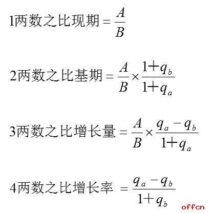 两数之比是把比重,倍数,平均数(比重=部分÷整体;倍数=A÷B,平均数=总量÷份数)类似于这种能写成A/B的概念,描述成两数之比。在普通数据增长过程中,我们有增长量增长率,同样两数之比也可求基期值增长量增长率。