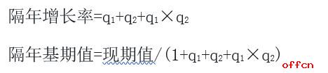 隔年增长一般运用在已知现期增长率和间期增长率,例如已知2019年增长率和2018年增长率求2019年比2017年的增长率,中间隔着2018年这一时期我们称之为求隔年增长率,公式梳理如下:
